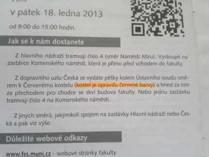 Studium na FSS jsem si rozmyslela hned po tom, co jsem v jejich příručce viděla popis cesty. Ano, Červený kostel je opravdu červené barvy.
