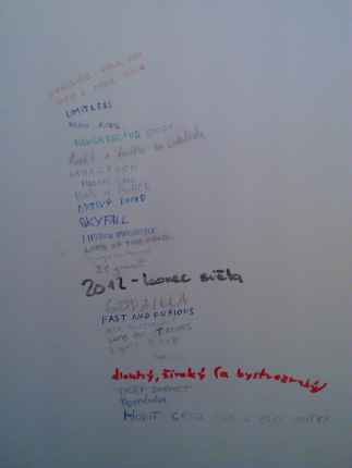 "Describe your shit with a movie title", Pánské záchody v RB.