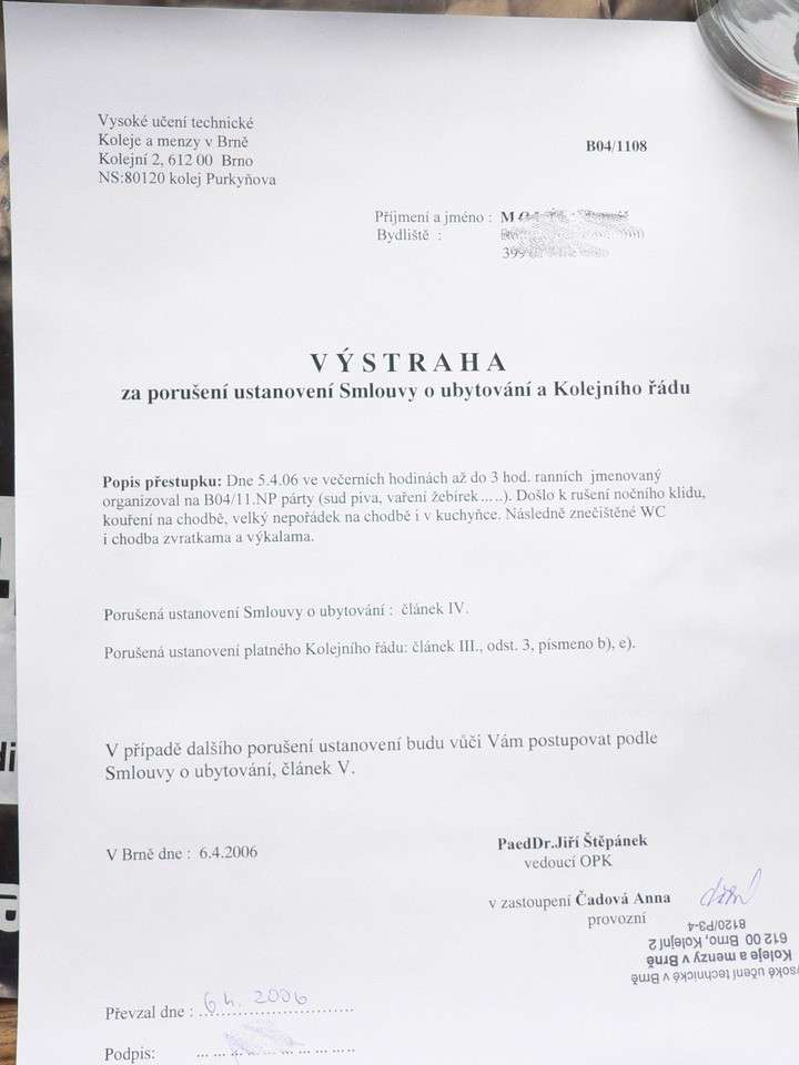 Po chodbové kolejní chlastačce mě ráno probudilo bušení na dveře. Zlitej jsem se vypotácel a kolejní jsem zapíral kosti z žebírek a poblitý vše od kuchyně až k záchodům. Následně jsem se přerazil o prázdnej sud v chodbičce. Stálo mě to podmínečný vyloučení...