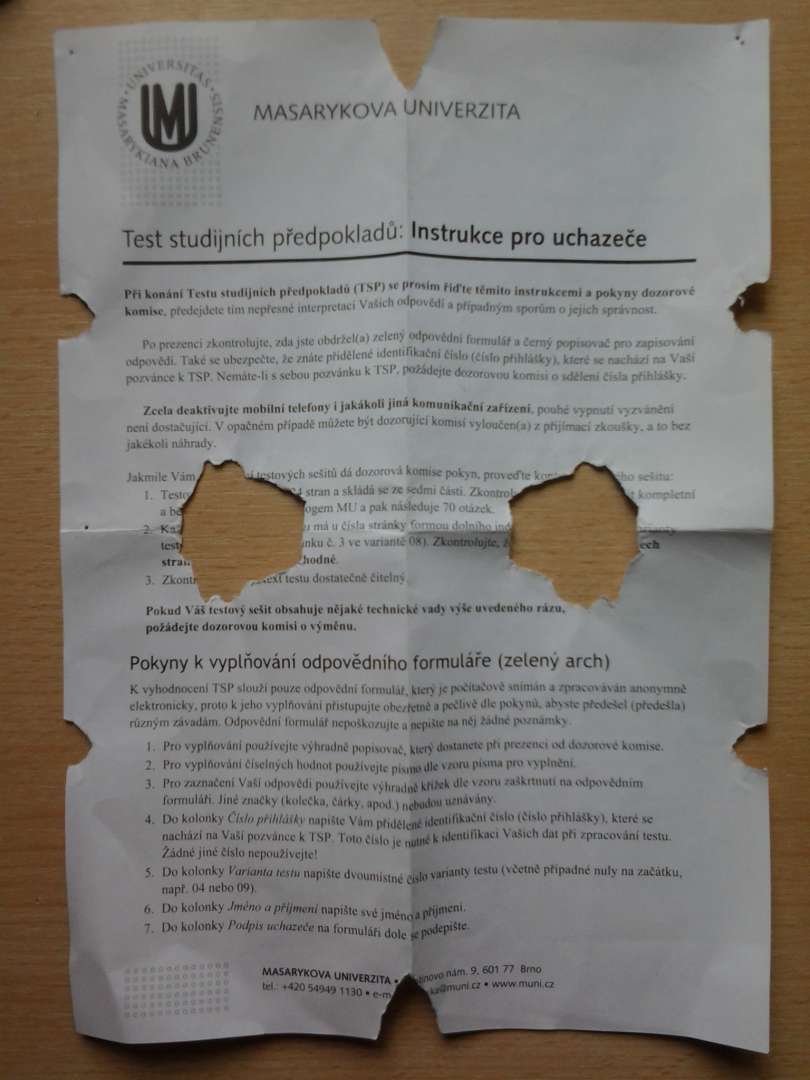 Na TSP se prý nesmí používat žádné pomůcky, ale o tom, jak se mohou použít instrukce pro uchazeče, se nemluvilo. Prostorově jsem si to představil.